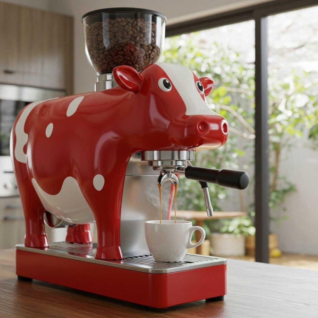 Cow-Shaped Coffee Maker – Cute Farmhouse Style Espresso Machine